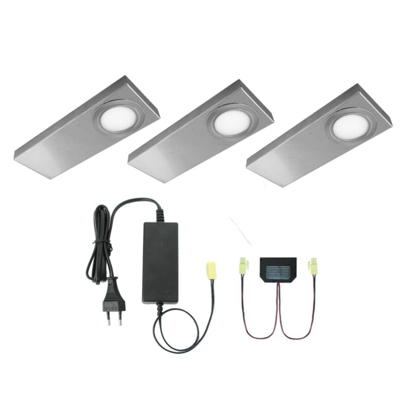 Hranaté podlinkové LED svietidlo Tain CF v súprave 3 kusov Hranaté podhľadové svietidlo Tain CF s okrúhlym svetelným výrezom, za ktorým bola osadená univerzálna biela dióda LED s príkonom 4 W, poskytuje cez opálový kryt z plexiskla príjemné plošné svetlo. Puzdro vo vzhľade ušľachtilej ocele má dĺžku 20 cm, šírku 8 cm a je vysoké iba 1,5 cm. Podlinkové svietidlo je dodávané v súprave 3 kusov a zdroj napájania je tiež zahrnutý v dodávke. Jedno z troch svietidiel je vybavené spínačom, ktorý zapína a vypína všetky svetlá. Ideálny zdroj svetla na montáž pod visiacimi skrinkami v kuchyni.