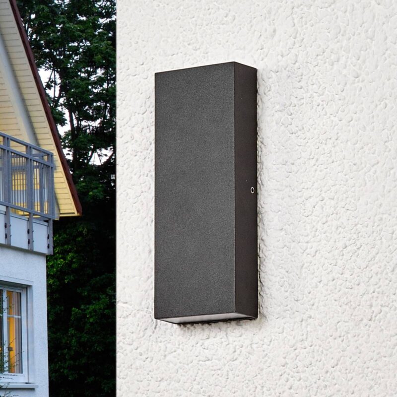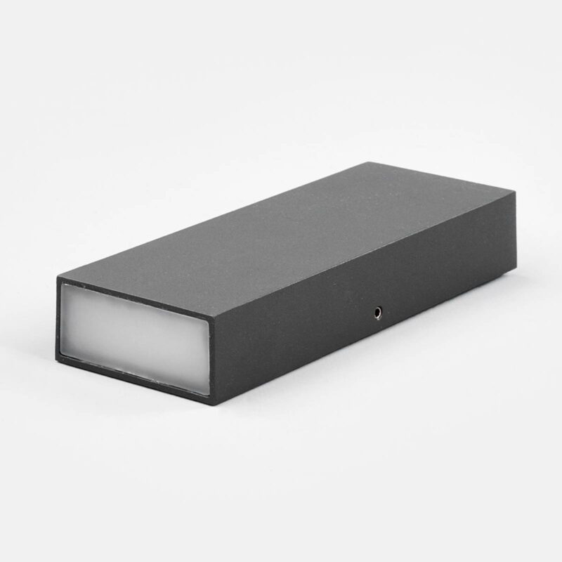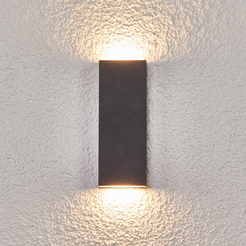 Obdĺžnikové exteriérové LED nástenné svietidlo Corda s nenápadným vzhľadom Svietidlo Corda má ploché a hranaté telo, ktoré sa veľmi dobre hodí predovšetkým do moderných prostredí, pričom však samozrejme pôsobí aj mimoriadne nadčasovo, keďže je obdĺžnik jedným z najuniverzálnejších geometrických útvarov. Svetlo svieti na dve strany, smerom nahor i nadol. Zabezpečuje sa tým jemné orientačné svetlo, ktoré náramne zjednodušuje chôdzu v tme, pričom však neoslepuje.