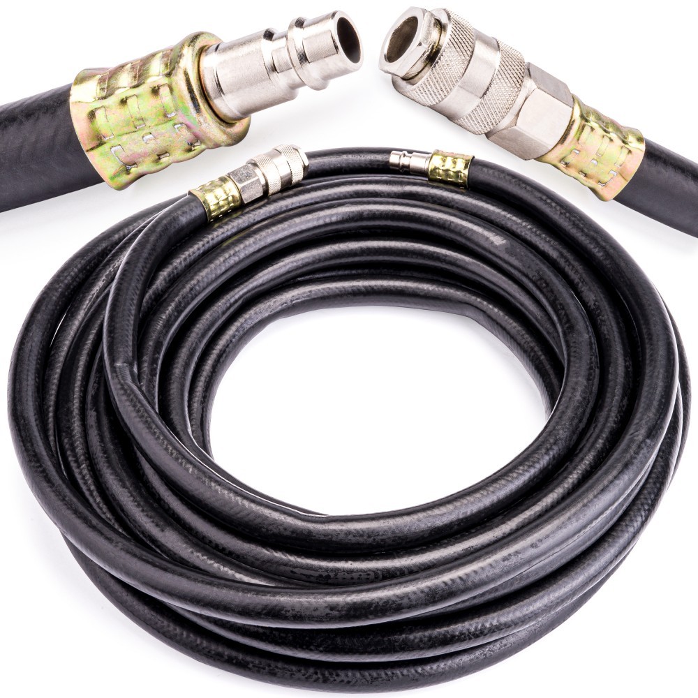 Rýchle pripojenie k pneumatickým zariadeniam typu: Priamočiare pílky na plech, kompresory, maľovacie pištole, pneumatické nitovacie stroje, pneumatické kľúče, vŕtačky, leštičky, brúsky atď. Pretože nejde o špirálu, je možné ho navinúť na bubon. Najväčšou výhodou je, že je vyrobený z kvalitnej gumy, ktorá je odolná voči olejom, pružná a odoláva vysokému tlaku.