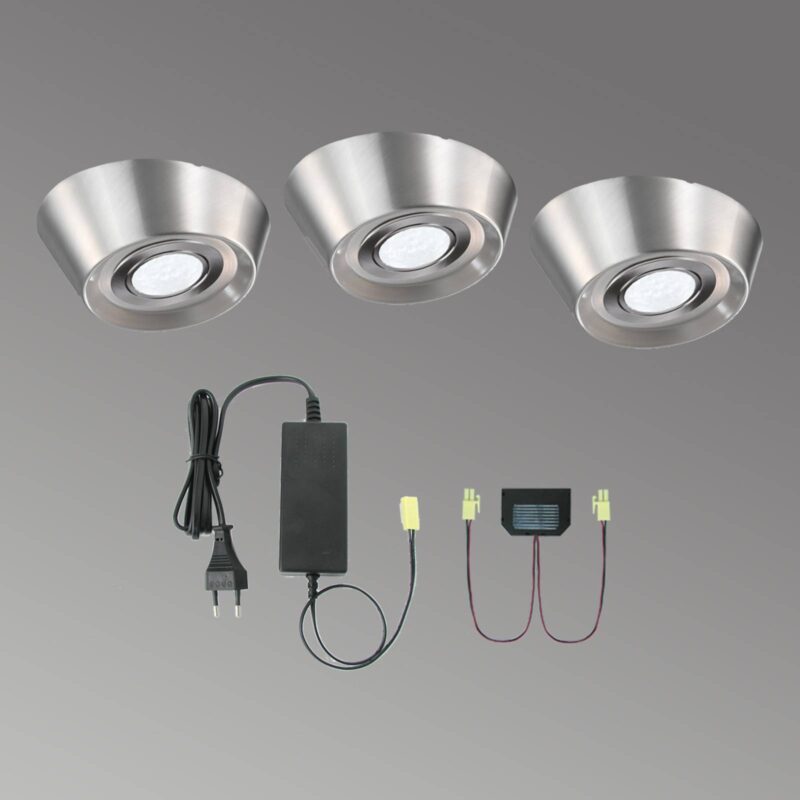 Podskrinkové svietidlo PAL CF LED vo výhodnej 3-dielnej sade Podskrinkové svietidlá PAL CF vo farbe nehrdzavejúcej ocele boli vybavené krytmi z opálového skla, ktoré rozvádzajú svetlo na veľkú plochu. Za sklom sa nachádzajú univerzálne biele LED diódy so spotrebou energie 4 W na svietidlo, z ktorých každá dosahuje svetelný tok 250 lúmenov. Napájacia jednotka potrebná na pripojenie je súčasťou dodávky. Či už pod policou v obývačke alebo pod nástennými skrinkami v kuchyni – svietidlá PAL CF LED pod skrinku vytvárajú dekoratívne svetelné akcenty.