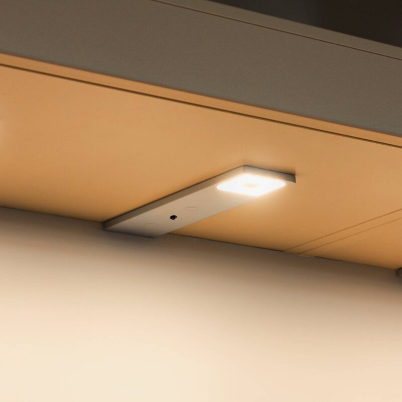 Nábytkové svietidlo LED na povrchovú montáž Imola v praktickej sade 3 ks Nábytkové svietidlo Imola na povrchovú montáž má moderný vzhľad a je predurčené na použitie pri priamom osvetlení pracovných plôch, šatníkov, políc a vitrín. Obdĺžnikový difúzor je zabudovaný v puzdre z vysokokvalitného plastu, ktoré možno namontovať pod alebo nad skrinky a výčnelky v závislosti od preferovaného vzhľadu. Vďaka uhlu vyžarovania 120 stupňov je každý interiér nábytku dokonale osvetlený príjemným teplým bielym svetlom. Všetky tri svietidlá možno navzájom prepojiť pomocou prepojovacieho kábla; prvé svietidlo má eurozástrčku, pomocou ktorej sa realizuje napájanie. Dvojmetrový kábel sa dá ľahko viesť za nábytkom. Vďaka dvom ďalším 2-metrovým prepojovacím káblom možno jednotlivé svietidlá v súprave bez problémov umiestniť aj vo väčších vzdialenostiach od seba. – 1 svietidlo vybavené integrovaným vypínačom – dodávané ako kompletná sada pripravená na pripojenie – vrátane LED predradníka so 6-cestným rozdeľovačom