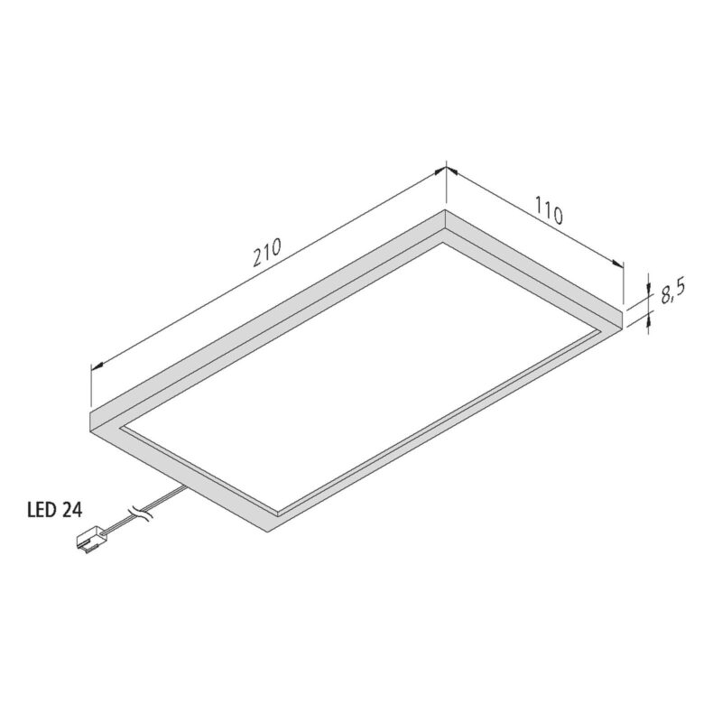 Plochý LED Sky pod svetlom skrinky v čiernej farbe Vďaka teplému bielemu, homogénnemu povrchovému svetlu je svetlo do skrinky LED Sky vynikajúcim riešením osvetlenia nad pracovnou plochou v kuchyni. Vďaka plochej konštrukčnej výške iba 8,5 mm a čiernemu hranatému plastovému krytu je svietidlo veľmi jednoduché a hodí sa do každého konceptu bývania. Svietidlo je vybavené pripájacím káblom, ktorý je dlhý 2,50 m a má zástrčku LED 24. Na uvedenie LED Sky do prevádzky je potrebný LED transformátor s 24 V (pozri príslušenstvo).