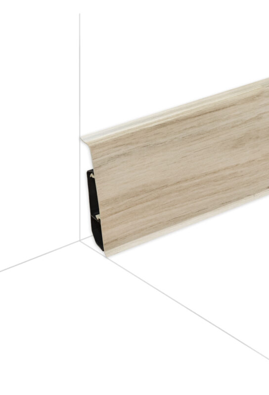 Podlahová lišta ARBITON INDO Wood effect je novinkou, ktorá dokonalo imituje štruktúru dreva. Lišty sú flexibilné a majú oddelené kanáliky pre vedenie káblov.