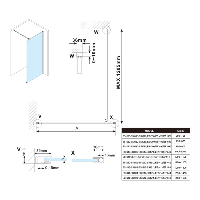 Stenové profily s toleranciou 15 mm uľahčujú stabilnú montáž zásten, inštalácia je možná na dlažbu alebo sprchovú vaničku