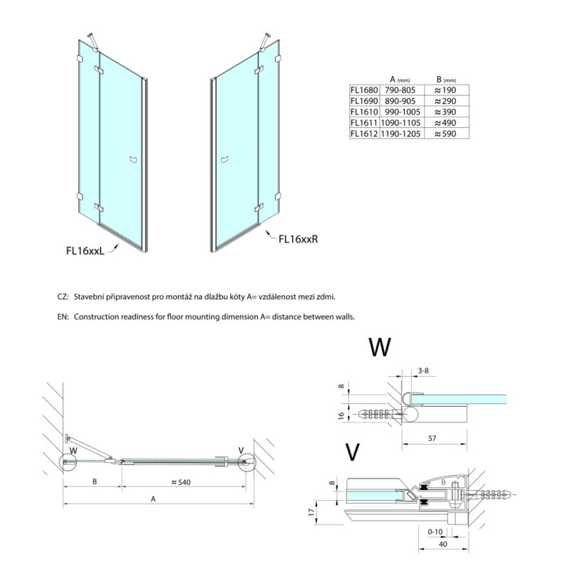 POLYSAN – FORTIS EDGE sprchové dvere do niky 1000, číre sklo, pravé FL1610R