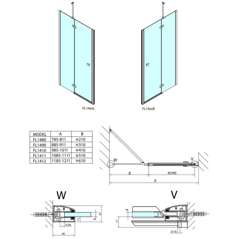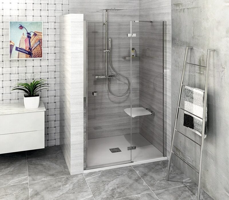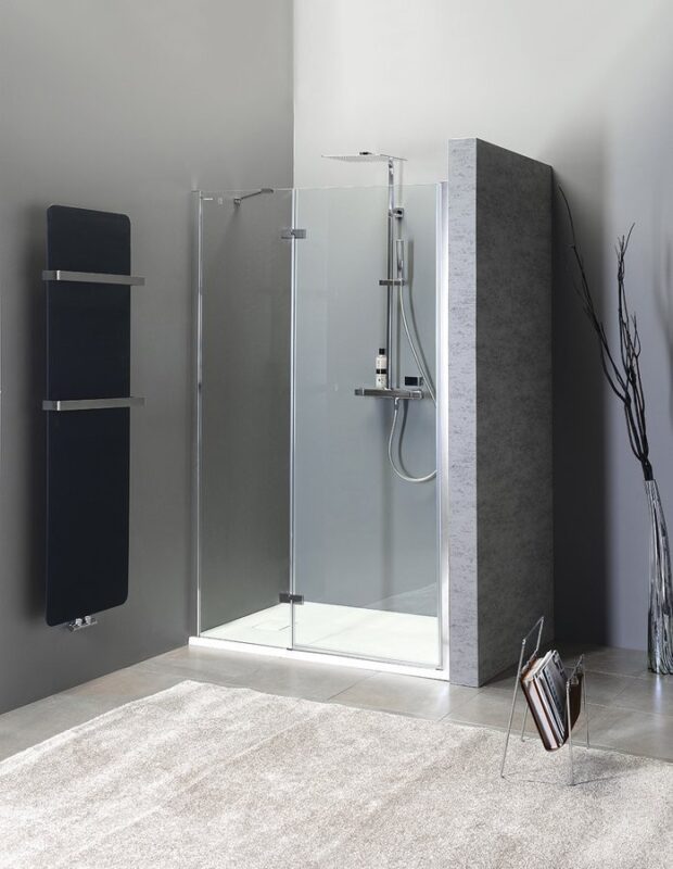 Bezrámové pántové zásteny FORTIS v modernom hranatom dizajne. Minimalistické pochrómované pánty v nekompromisnom hranatom dizajne, zvnútra zapustené pre ľahké čistenie a so zdvíhacou funkciou pre pohodlné otváranie. Bezpečnostné číre sklo v hrúbke 8 mm je ošetrené povrchovou úpravou ANTIDROP na jednoduché čistenie. Výška 2000 mm. Hranaté pochrómované madlo v rovnakom minimalistickom dizajne ako pánty.