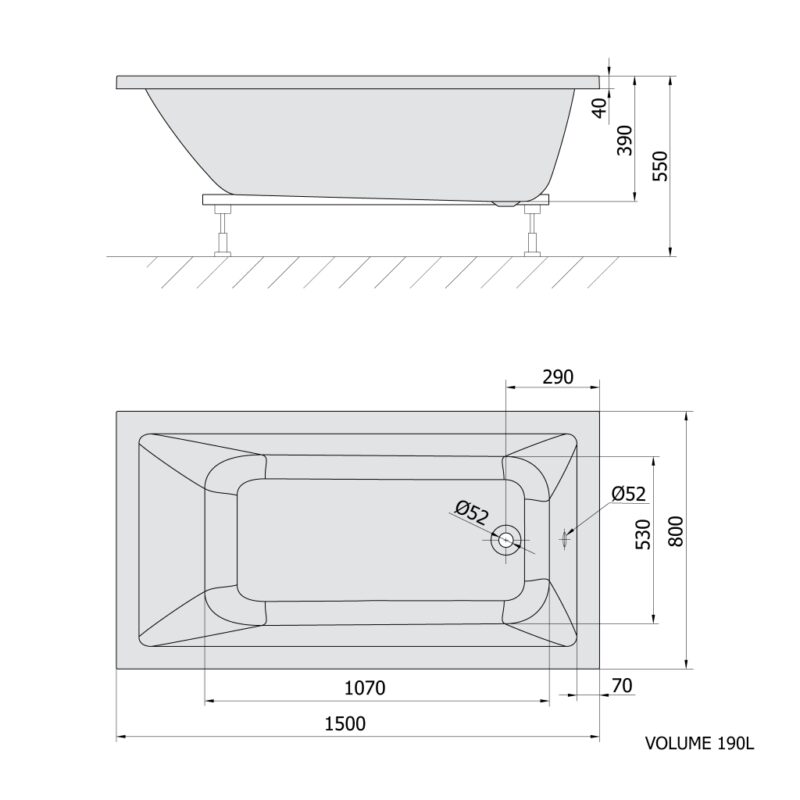 POLYSAN – NOEMI obdĺžniková vaňa 150x80x39cm, biela 71727