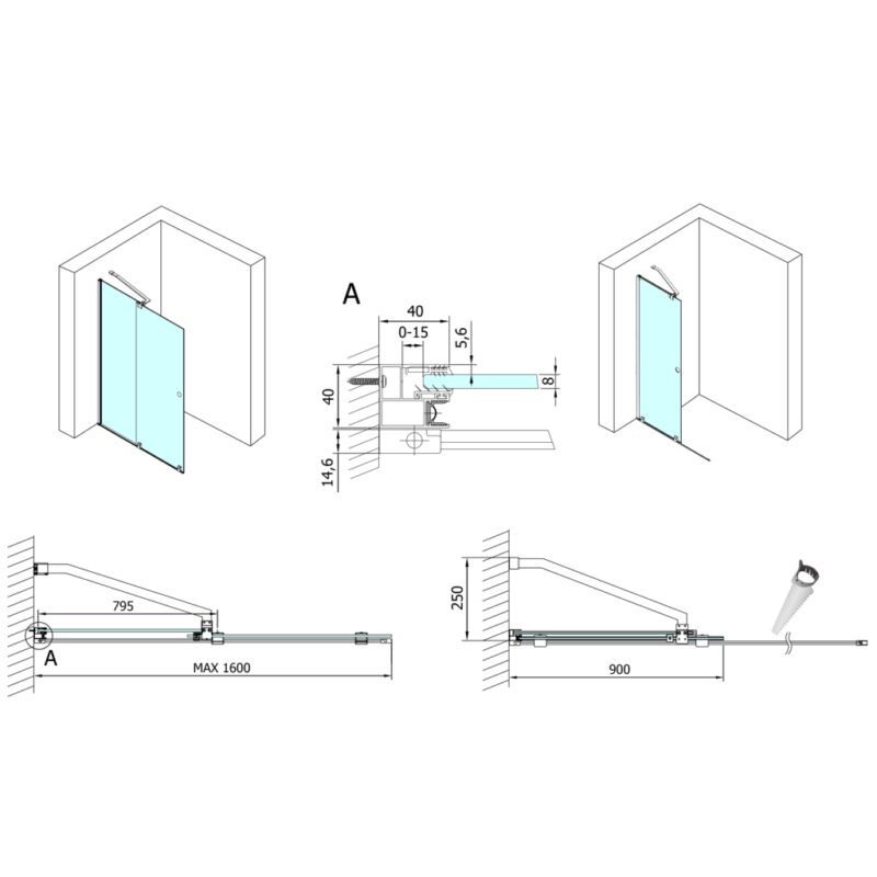 Domovská stránka » Katalóg » POLYSAN – ROLLS BLACK sprchové dvere do priestoru 1600 výška 2000 číre sklo MS5-160B