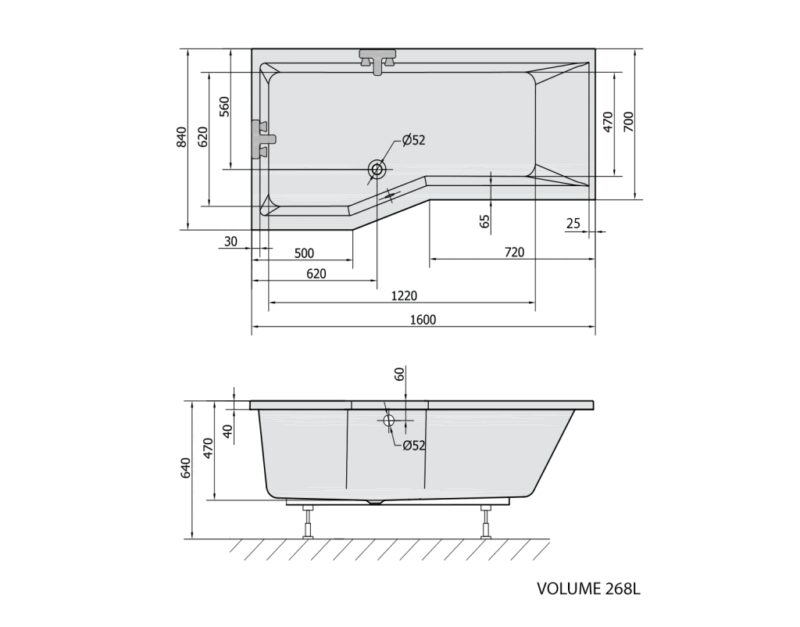 POLYSAN – VERSYS L asymetrická vaňa 160x84x70x47cm, biela 14611