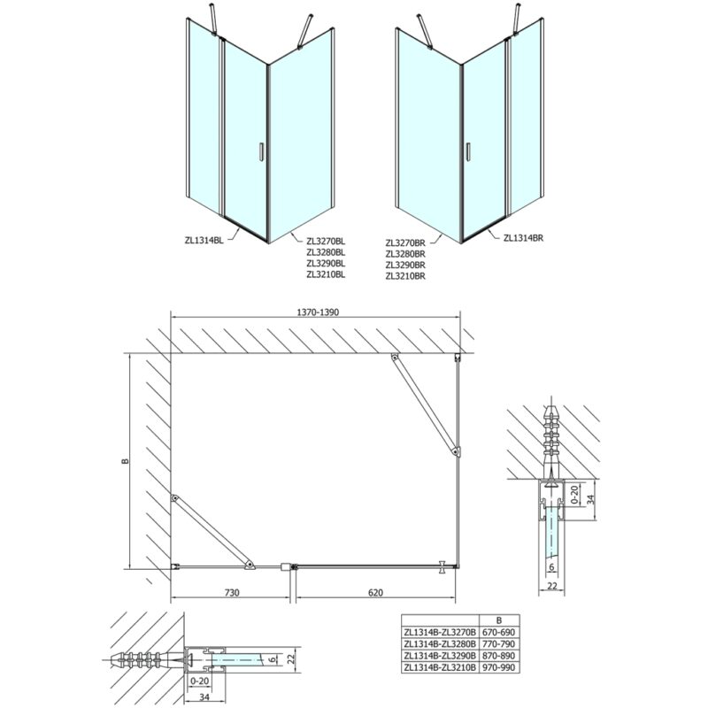 POLYSAN – ZOOM Black obdĺžniková sprchová zástena 1400×900 L/P varianta ZL1314BZL3290B