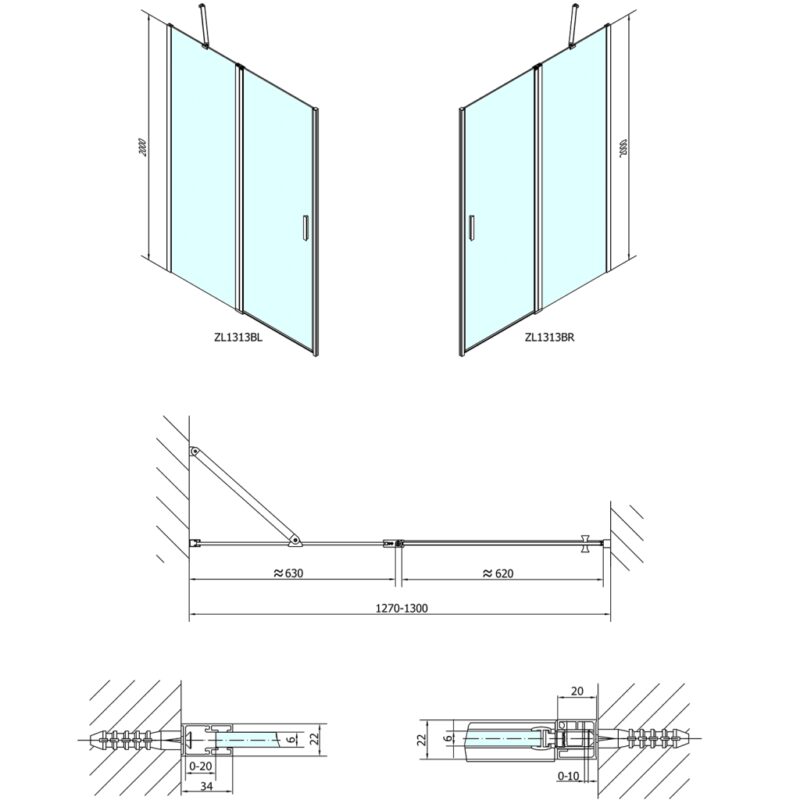 POLYSAN – ZOOM BLACK sprchové dvere 1300, číre sklo ZL1313B