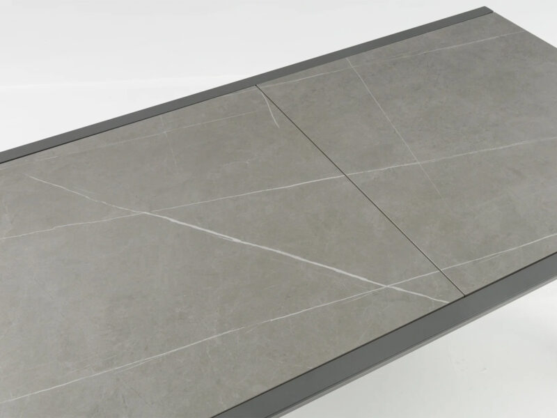 Rozťahovací jedálenský stôl Ponte s hliníkovým rámom a doskou zo sintrovaného kameňa ponúka elegantný dizajn a možnosť predĺženia z 160 cm na 210 cm pre maximálny komfort.