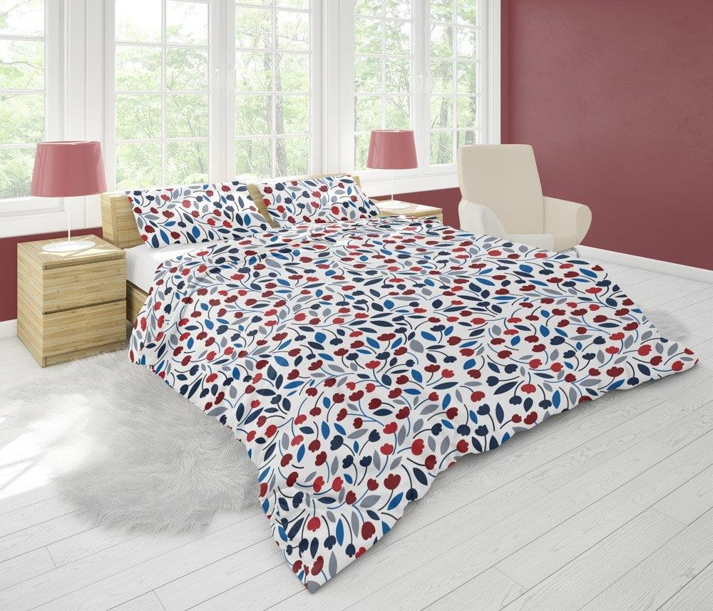 Obliečky vyrobené z mikrovlákna, známeho aj ako syntetická bavlna. Je to priedušná látka, veľmi jemná a príjemná na dotyk. Moderný dizajn zvýrazní krásu a individualitu každej spálne. Inovatívna technika farbenia zaisťuje ostrosť vzoru a farebnú stálosť. Spodná strana posteľnej bielizne je rovnaká ako vrchná strana. Zaujímavé vzory dodajú každému interiéru jedinečný charakter. Ideálne na domáce použitie alebo ako darček. Upozorňujeme, že počítač zobrazuje farby podľa individuálnych nastavení a vlastností. Špecifikácie: Farby:biela, červená a modráZloženie: 100% polyesterTolerancia rozmerov:+/- 5%