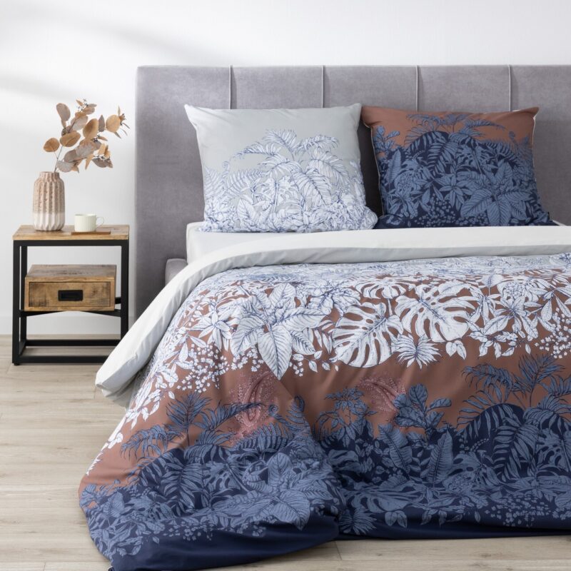 Bavlnené obliečky so vzorom tropických listov.Zababušte sa do posteľnej bielizne Tropical Eden a ponorte sa do uvoľňujúceho spánku. Táto súprava posteľnej bielizne s exotickým kvetinovým motívom dodá vašej spálni útulnosť a originalitu. Táto jedinečná posteľná bielizeň z mäkkej bavlny vám poskytne pohodlný zdravý a pokojný spánok, zatiaľ čo tropický motív vás prenesie na exotický ostrov plný divokej vegetácie.Súprava posteľnej bielizne obsahuje obliečku na prikrývku a dve obliečky na vankúš. Vďaka vysokej kvalite látky a starostlivému spracovaniu je súprava Tropical Eden estetická, odolná a ľahko sa udržiava.Posteľná bielizeň je zabalená v estetickej ozdobnej škatuli – ideálna na darček.Rozmery: obliečka na prikrývku: 220×200 cm, 2 obliečky na vankúš: 70×80 cm.Vyrobené v Španielsku.Materiál: 100 % bavlna.Tolerancia rozmerov: +/- 5 %.Teplota prania: do 40 °CPosteľná bielizeň na jednej strane, so zipsom.Pred prvým použitím vyperte s podobnými farbami.