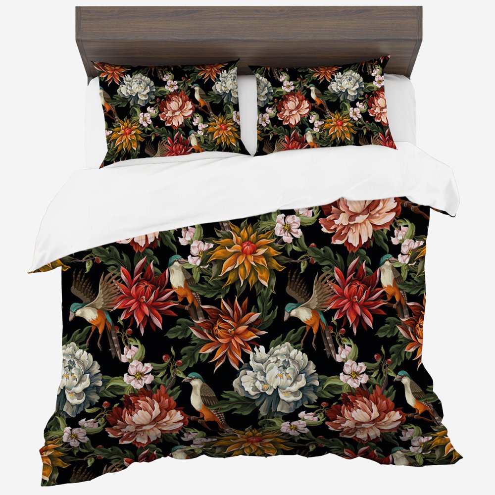 Posteľné obliečky zo syntetickej bavlny s kvetinovým vzorom – čierne Šírka: 140 cm | Dĺžka: 200 cm