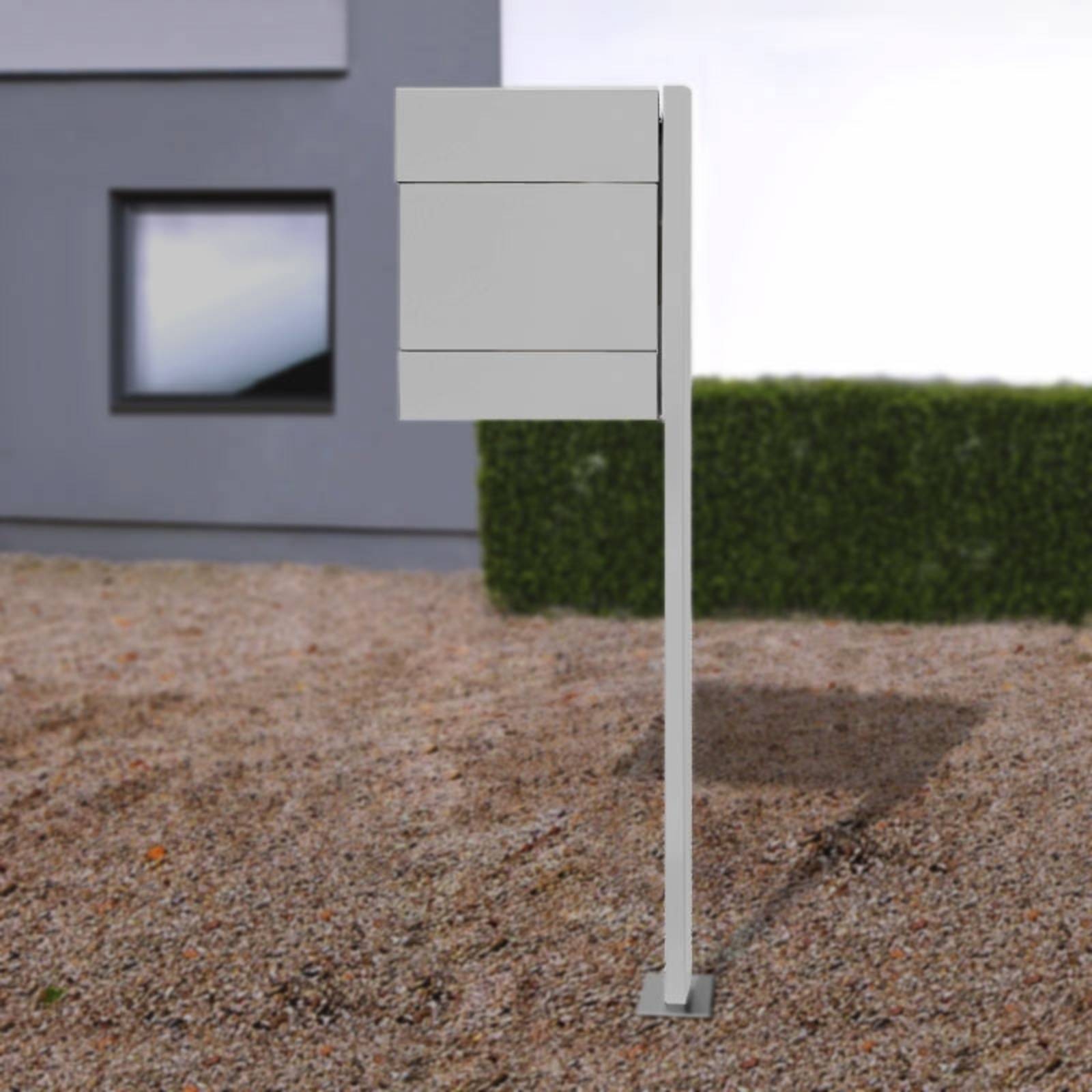 Pohodlná voľne stojaca poštová schránka Letterman V – s priehradkou na noviny a poštou Poštová schránka Letterman V zaujme svojím puristickým dizajnom a vynikajúcim spracovaním. Je vybavená 40 cm širokou priehradkou na noviny, ktorá zaručuje potešenie z čítania bez záhybov. Vďaka tomu je Letterman V ideálnym riešením pre všetkých čitateľov novín, ktorí majú špeciálne požiadavky, pokiaľ ide o stav ich čítacieho materiálu. 32,5 cm dlhý a 3,5 cm vysoký vhadzovací otvor poštovej schránky je dimenzovaný tak, aby sa doň dali vkladať aj obálky C4 bez pokrčenia. Dodávka vrátane pošty: 8 x 4 x 144 cm.