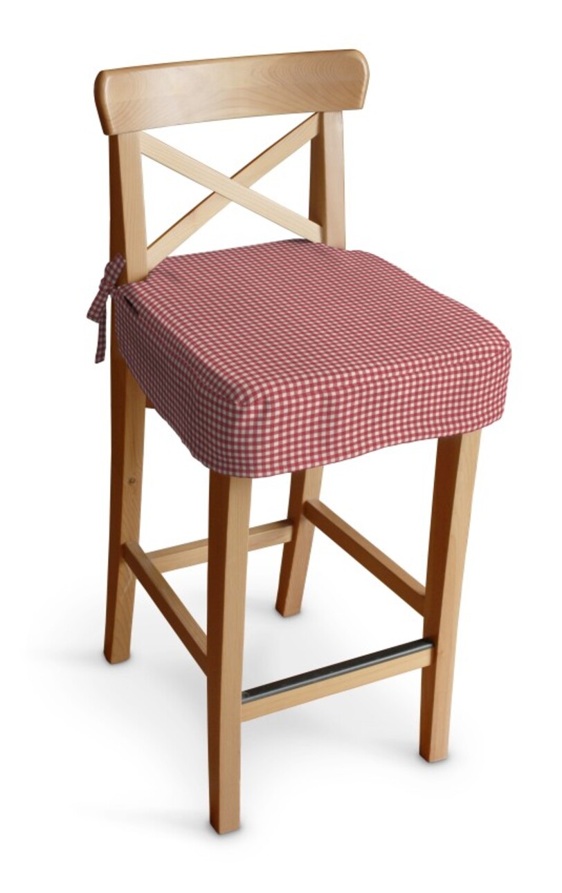 Poťah na barovú stoličku Ingolf, červeno-biele malé káro, návlek na barovú stoličku Ingolf, Quadro, 136-15