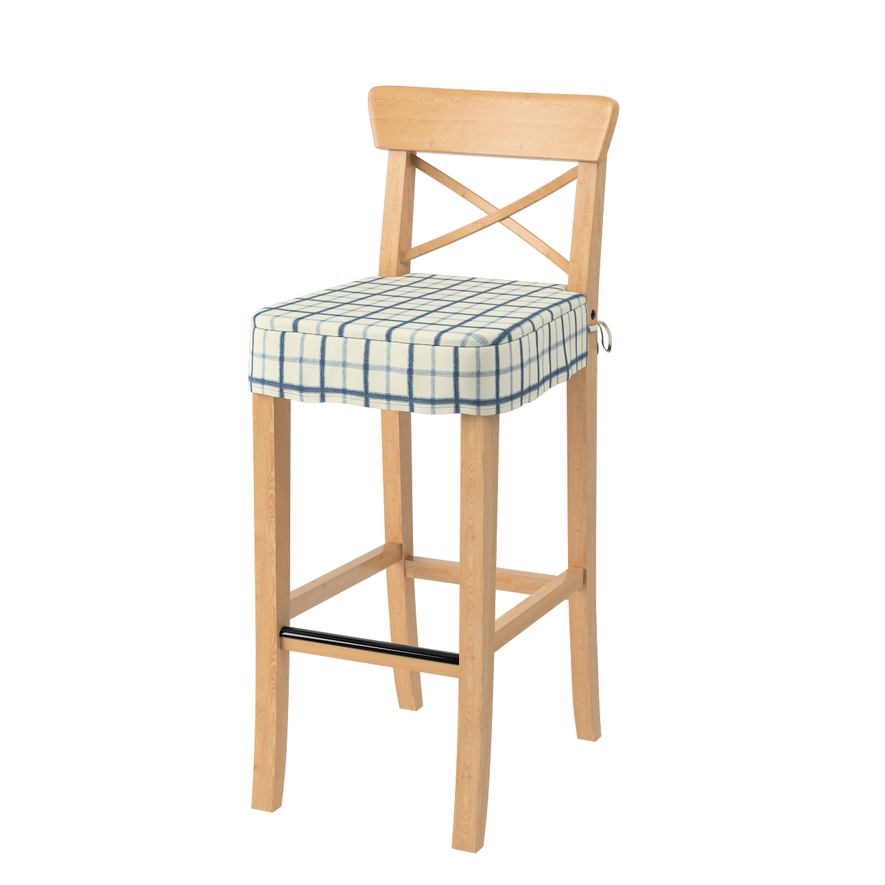 Poťah na barovú stoličku Ingolf, modré káro na svetlobéžoom podklade, návlek na barovú stoličku Ingolf, Avinon, 131-66