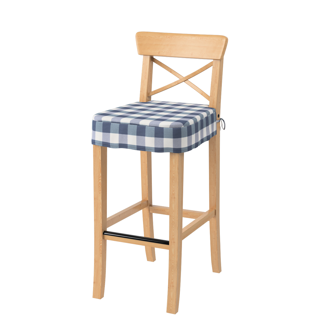 Poťah na barovú stoličku Ingolf, modro – biele veľké káro, návlek na barovú stoličku Ingolf, Quadro, 136-03