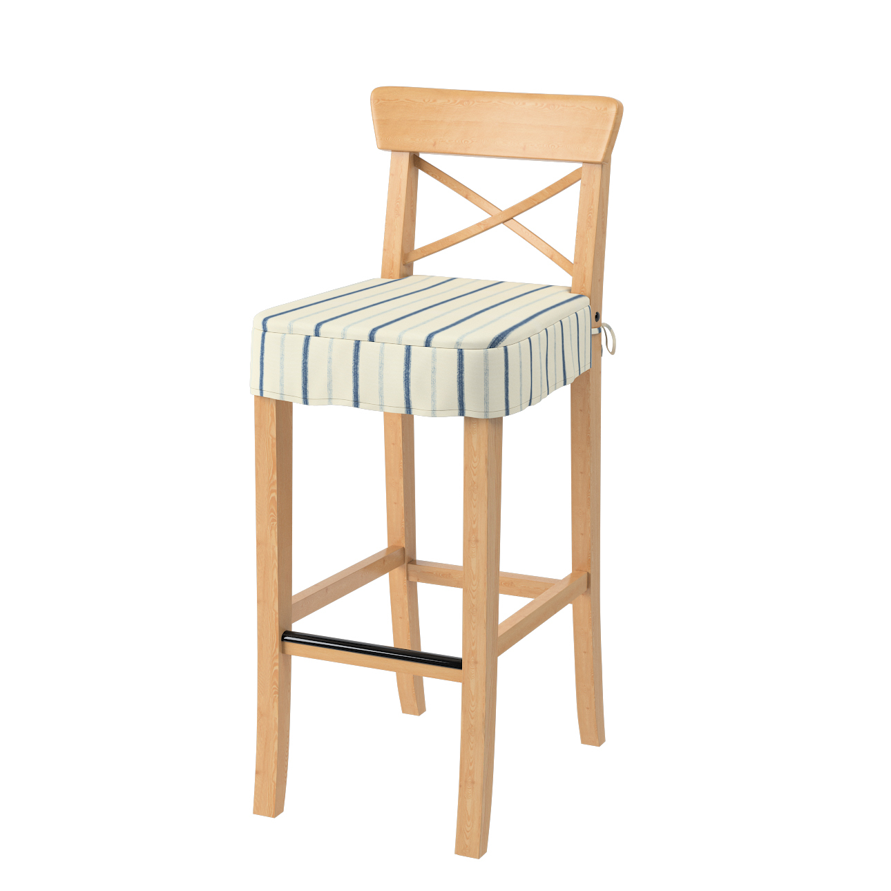 Poťah na barovú stoličku Ingolf, svetlo a tmavomodrý pásik na svetlobéžovom podklade, návlek na barovú stoličku Ingolf, Avinon, 129-66