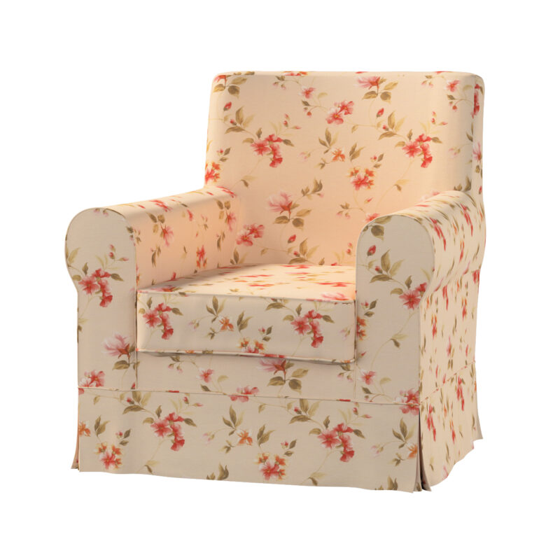 Poťah na kreslo Ektorp Jennylund, jemané ružové kvety na svetlom ľanovom podklade, Poťah na kreslo Ektorp Jennylund, Londres, 143-88