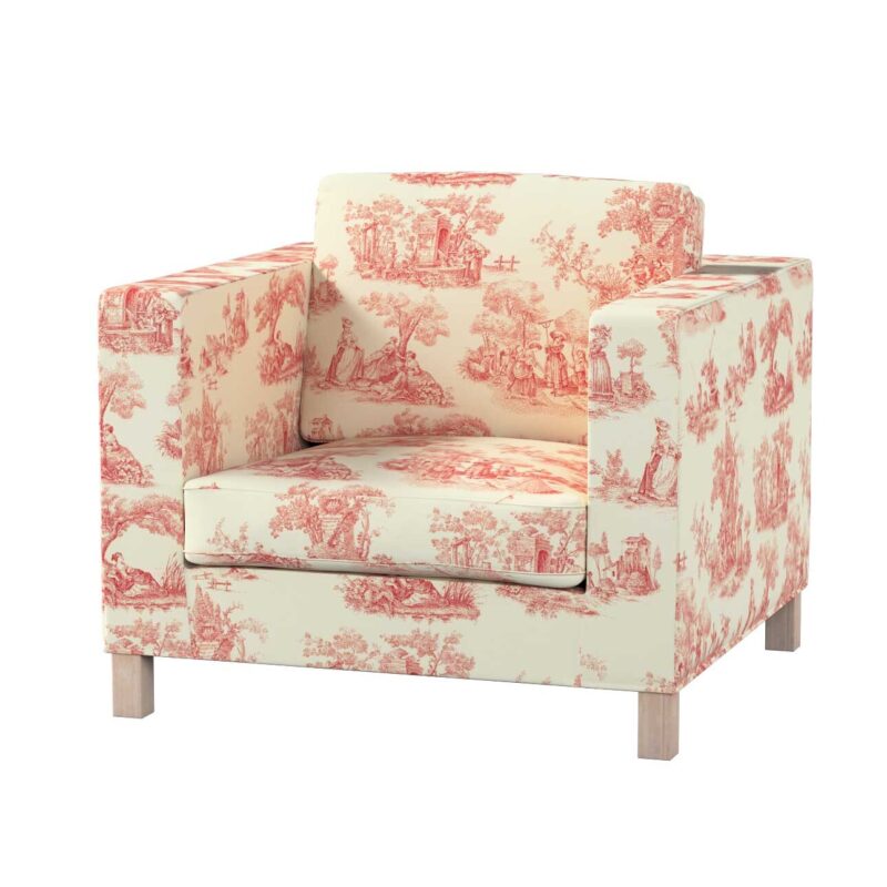 Poťah na kreslo Karlanda, krátky, bordový vzor na svetlobéžovom podklade, Poťah na kreslo Karlanda, krátky, Avinon, 132-15