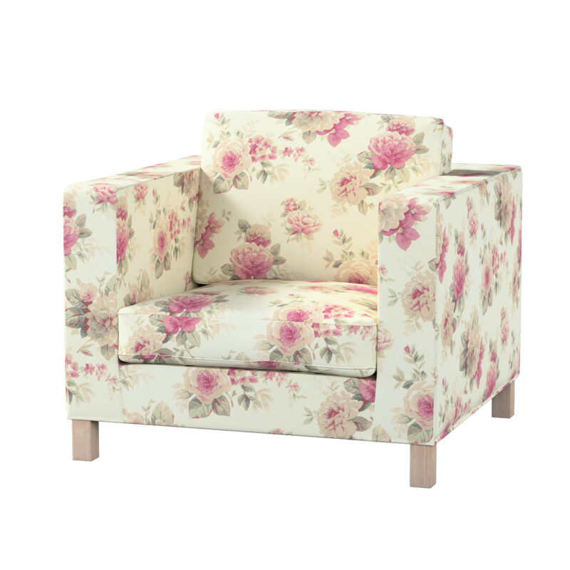 Poťah na kreslo Karlanda, krátky, ružovo-béžové ruže na krémovom podklade, Poťah na kreslo Karlanda, krátky, Londres, 141-07