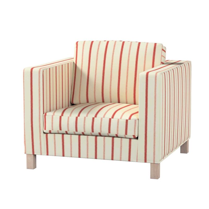 Poťah na kreslo Karlanda, krátky, svetlo a tmavo bordový pásik na svetlobéžovom podklade , Poťah na kreslo Karlanda, krátky, Avinon, 129-15