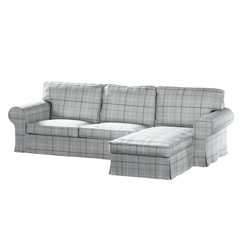Poťah na pohovku aj ležadlo Ektorp pre 2 osoby, šedo – modré káro, Poťah na sedačku Ektorp 2-os. aj ležadlo, Edinburg, 703-18
