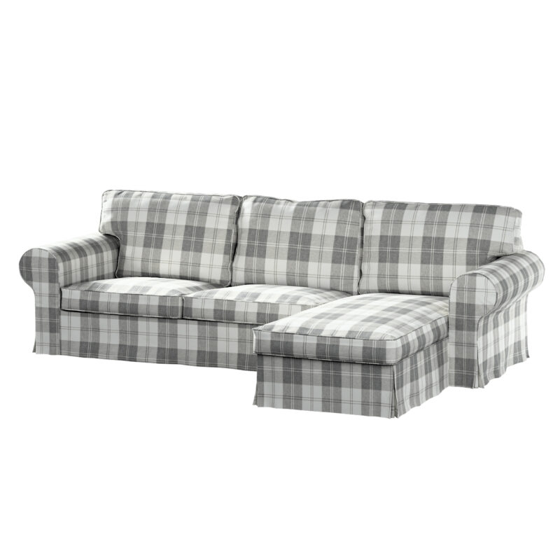 Poťah na pohovku aj ležadlo Ektorp pre 2 osoby, sivo – biele káro, Poťah na sedačku Ektorp 2-os. aj ležadlo, Edinburg, 115-79