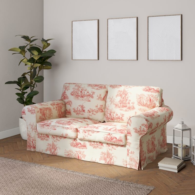 Poťah na sedačku Ektorp (nerozkladá sa, pre 2 osoby), bordový vzor na svetlobéžovom podklade, Poťah na sedačku Ektorp pre 2 osoby – nerozkladá sa, Avinon, 132-15