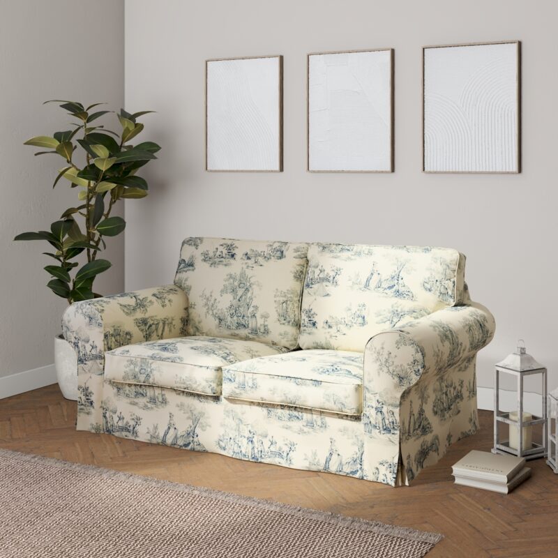 Poťah na sedačku Ektorp (rozkladacia, pre 2 osoby) NOVÝ MODEL 2012, modrý vzor na svetlobéžovom podklade, Poťah na sedačku Ektorp rozkladacia pre 2 osoby NOVÝ MODEL, Avinon, 132-66