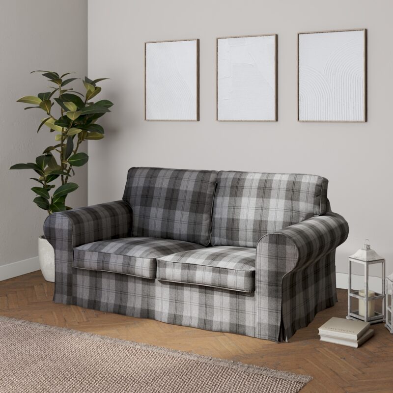 Poťah na sedačku Ektorp (rozkladacia, pre 2 osoby) NOVÝ MODEL 2012, sivo – grafitové káro, Poťah na sedačku Ektorp rozkladacia pre 2 osoby NOVÝ MODEL, Edinburg, 115-75
