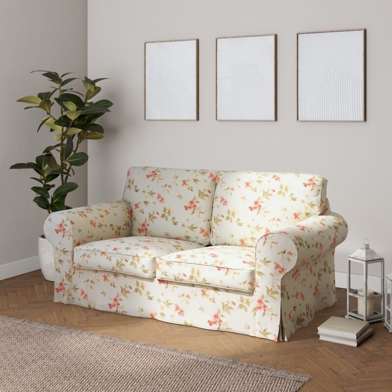 Poťah na sedačku Ektorp (rozkladacia, pre 2 osoby) STARÝ MODEL, jemné ružovozelené kvety na zelenkavomodrom podklade, poťah na sedačku Ektorp pre 2 osoby – rozkladacia, Londres, 143-89