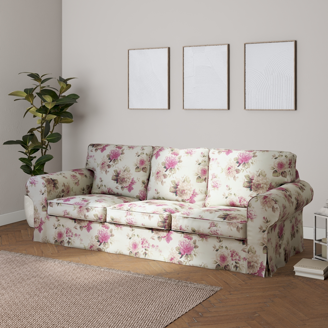 Poťah na sedačku Ektorp (rozkladacia, pre 3 osoby) NOVÝ MODEL 2013, ružovo-béžové ruže na krémovom podklade, Poťah na sedačku Ektorp 3-os rozkladacia nový model 2013, Londres, 141-07