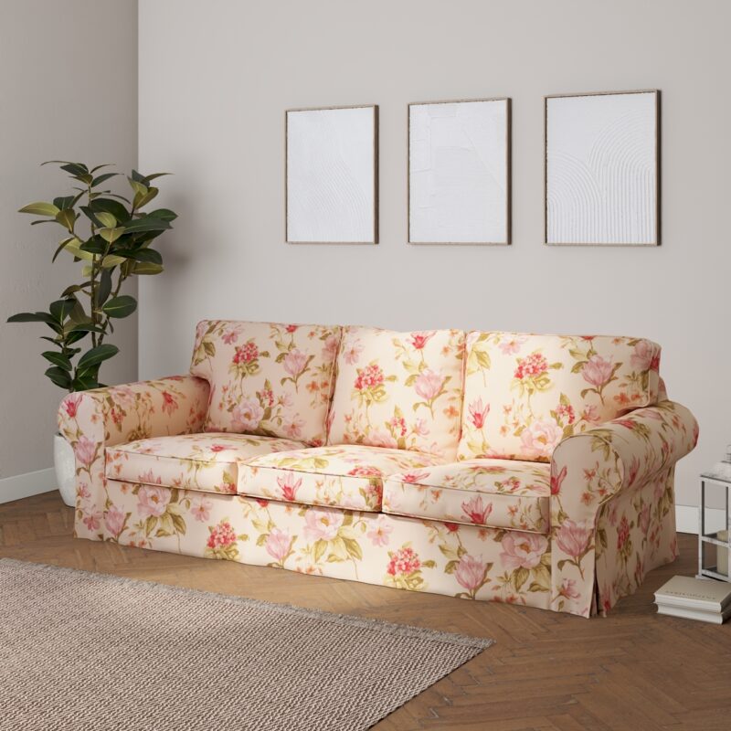 Poťah na sedačku Ektorp STARÝ MODEL (rozkladacia, pre 3 osoby), výrazný vzor ružovozelené kvety na ľanovom podklade , Poťah na sedačku Ektorp pre 3 osoby – rozkladacia, Londres, 143-87
