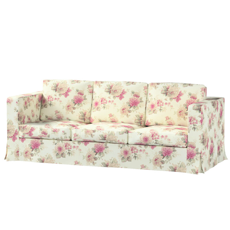 Poťah na sedačku Karlanda (pre 3 osoby,nerozkladacia,dlhý), ružovo-béžové ruže na krémovom podklade, Poťah na sedačku Karlanda pre 3-os., dlhý, Londres, 141-07