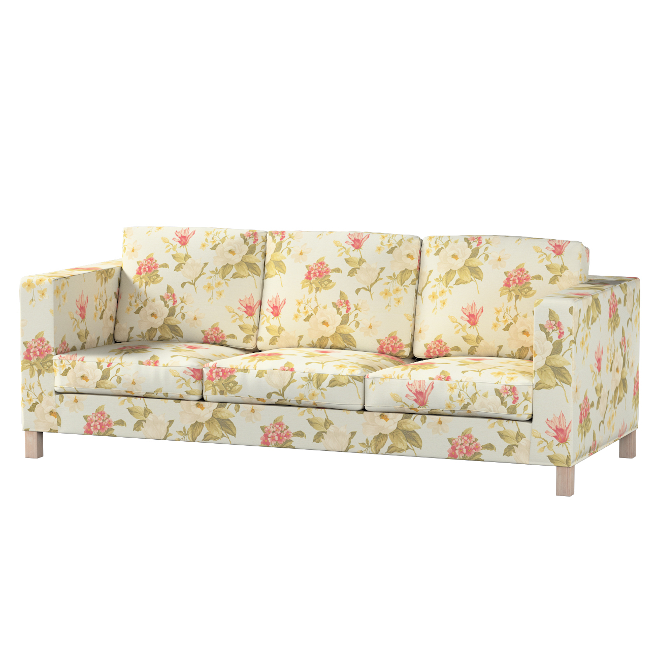 Poťah na sedačku Karlanda (pre 3 osoby,nerozkladacia,krátky), duże kwiaty na niebieskim tle, Poťah na sedačku Karlanda pre 3-os., krátky, Londres, 143-86