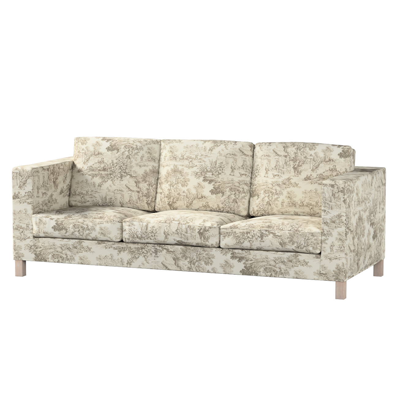 Poťah na sedačku Karlanda (pre 3 osoby,nerozkladacia,krátky), ecru pozadie, béžové postavy, Poťah na sedačku Karlanda pre 3-os., krátky, Avinon, 144-53