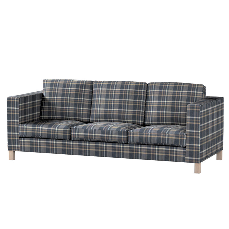 Poťah na sedačku Karlanda (pre 3 osoby,nerozkladacia,krátky), modro – béžové káro, Poťah na sedačku Karlanda pre 3-os., krátky, Edinburg, 703-16