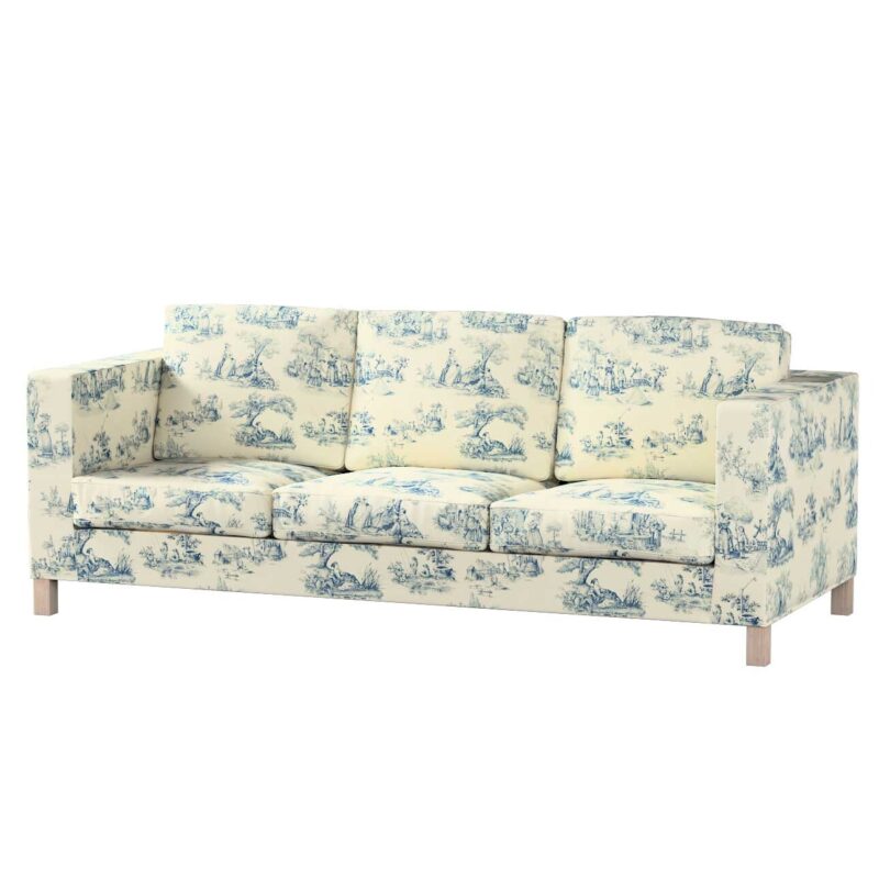 Poťah na sedačku Karlanda (pre 3 osoby,nerozkladacia,krátky), modrý vzor na svetlobéžovom podklade, Poťah na sedačku Karlanda pre 3-os., krátky, Avinon, 132-66