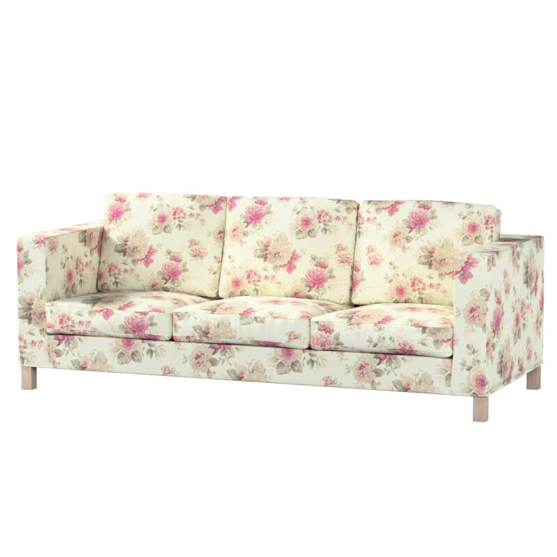 Poťah na sedačku Karlanda (pre 3 osoby,nerozkladacia,krátky), ružovo-béžové ruže na krémovom podklade, Poťah na sedačku Karlanda pre 3-os., krátky, Londres, 141-07
