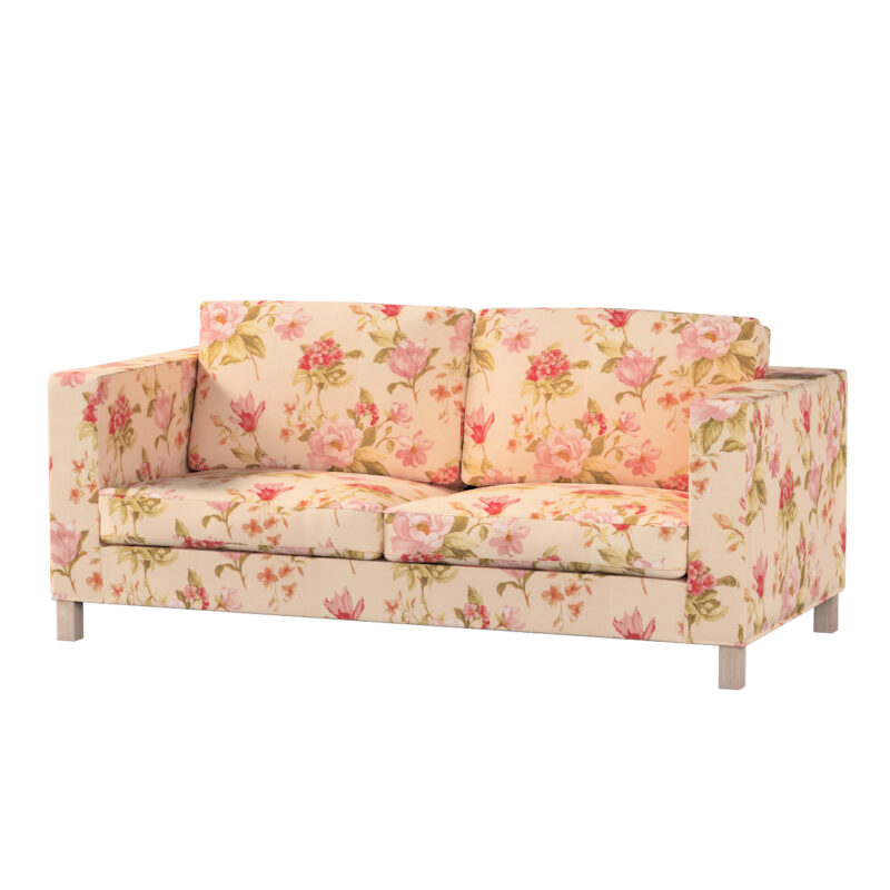 Poťah na sedačku Karlanda (rozkladacia,krátky), výrazný vzor ružovozelené kvety na ľanovom podklade , Poťah na sedačku Karlanda rozkladacia, Londres, 143-87