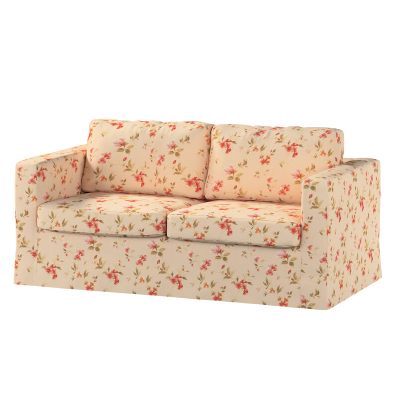 Poťah na sedačku Karlstad (nerozkladací, 2-miestny, dlhý), jemané ružové kvety na svetlom ľanovom podklade, 165 x 89 x 64 cm, Londres, 143-88