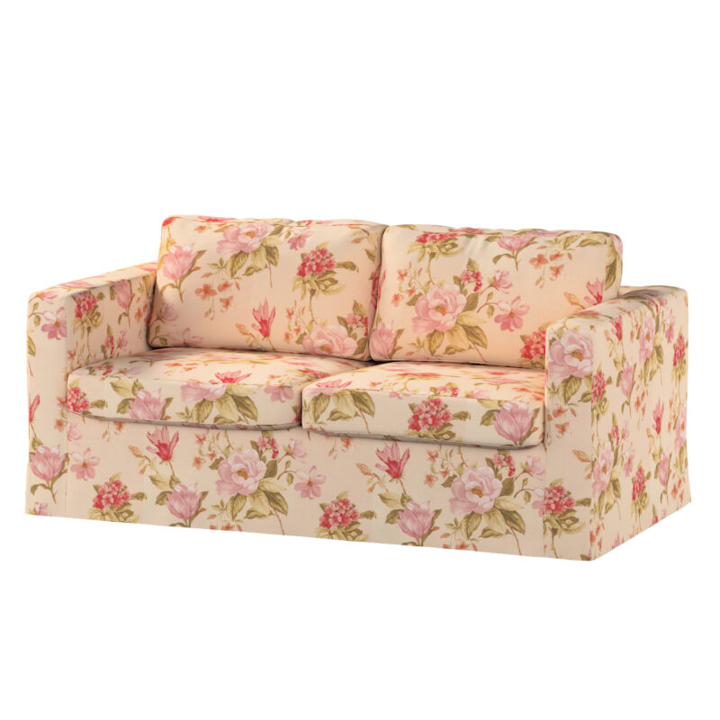 Poťah na sedačku Karlstad (nerozkladací, 2-miestny, dlhý), výrazný vzor ružovozelené kvety na ľanovom podklade , 165 x 89 x 64 cm, Londres, 143-87