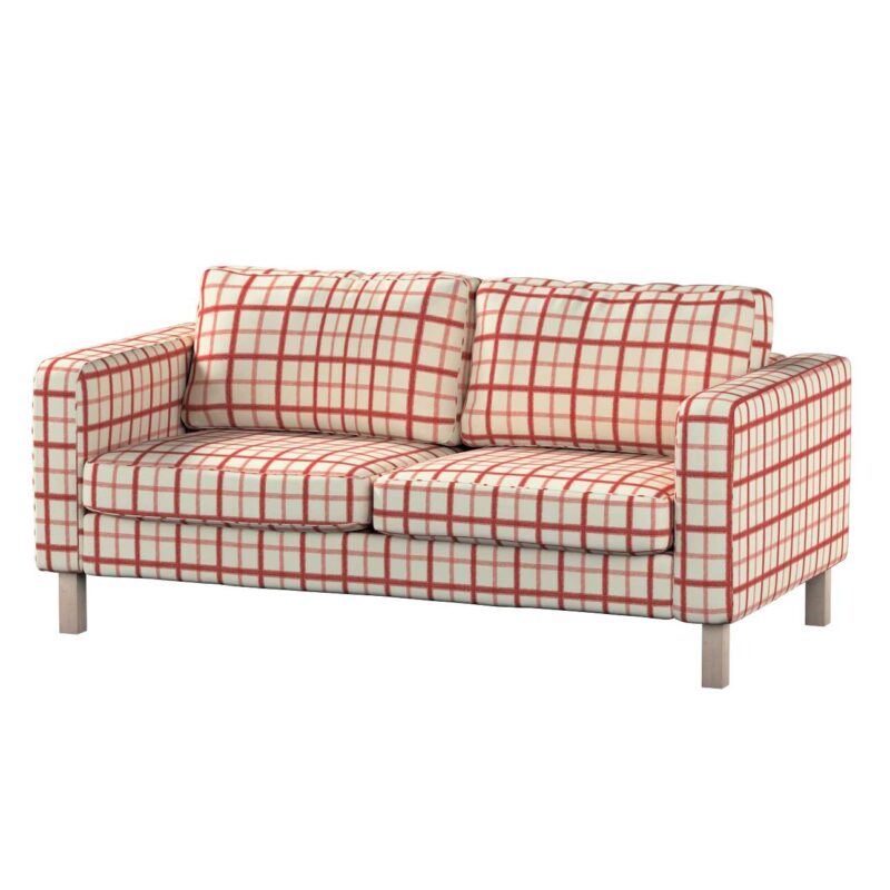 Poťah na sedačku Karlstad (nerozkladací, 2-miestny, krátky), bordové káro na svetlobéžovom podklade, 165 x 89 x 64 cm, Avinon, 131-15