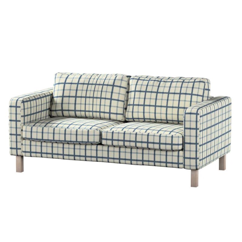 Poťah na sedačku Karlstad (nerozkladací, 2-miestny, krátky), modré káro na svetlobéžoom podklade, 165 x 89 x 64 cm, Avinon, 131-66