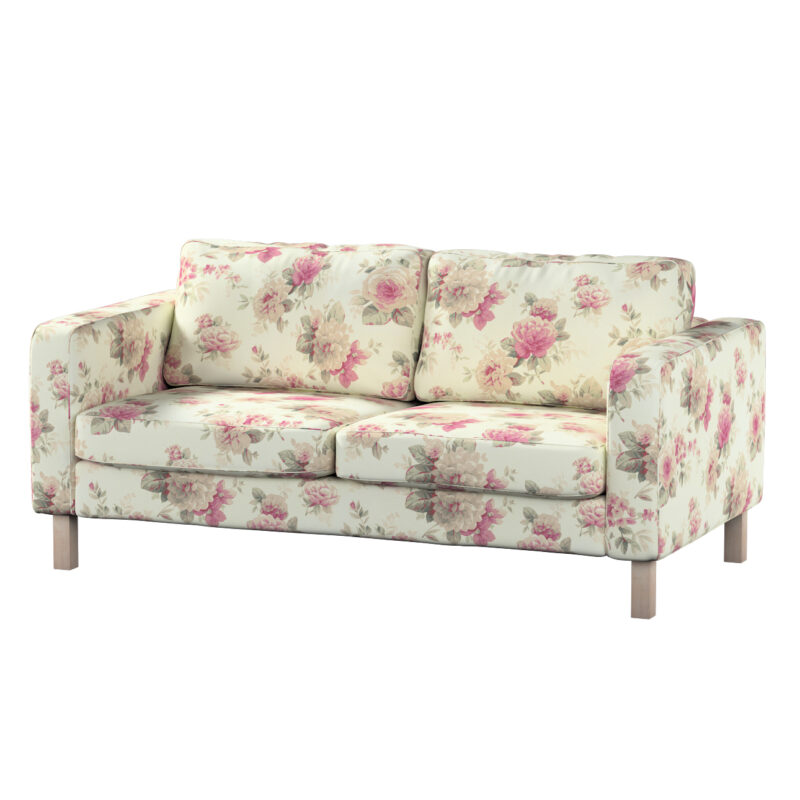 Poťah na sedačku Karlstad (nerozkladací, 2-miestny, krátky), ružovo-béžové ruže na krémovom podklade, 165 x 89 x 64 cm, Londres, 141-07