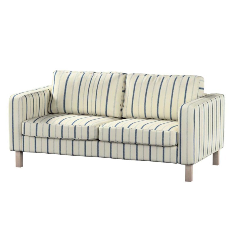 Poťah na sedačku Karlstad (nerozkladací, 2-miestny, krátky), svetlo a tmavomodrý pásik na svetlobéžovom podklade, 165 x 89 x 64 cm, Avinon, 129-66