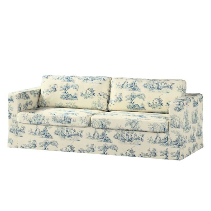 Poťah na sedačku Karlstad (nerozkladáci, 3-miestný, dlhý), modrý vzor na svetlobéžovom podklade, 224 x 89 x 64 cm, Avinon, 132-66